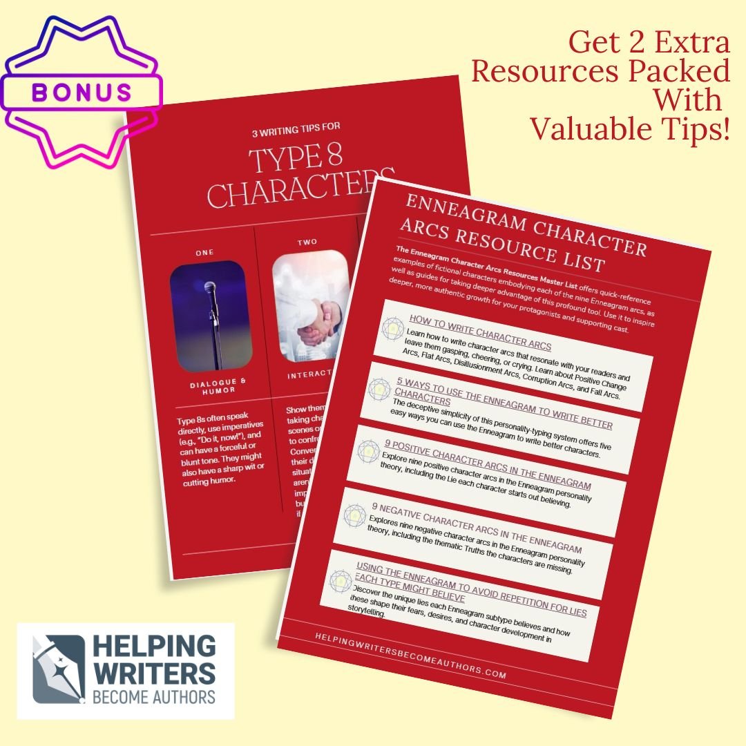 - Bonuses Included: You also get a handy reference sheet showing the main points and differences of all of the nine Enneagram types, as well as a detailed Resources PDF with links to dozens of helpful tools for both the Enneagram and character arcs, and a Quick Tips sheet with more insight into Type 8's personality.