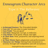 - Positive Arc Outline: The first cheat sheet details a possible Positive Character Arc for each type. This is essentially a mini roadmap of how a character of this personality can grow and overcome inner challenges. It covers the key beats or phases of growth. For instance, on the Type 1 sheet, the Positive Arc might show the journey from rigidity and self-criticism to balanced wisdom and acceptance (i.e., learning to see grey areas and forgive imperfection). For Type 6, a Positive Arc would illustrate growing out of anxiety and dependence into authority and courage. You can use this as a template or inspiration when plotting your character’s storyline, or simply to ensure the transformation feels true to that personality type’s issues.