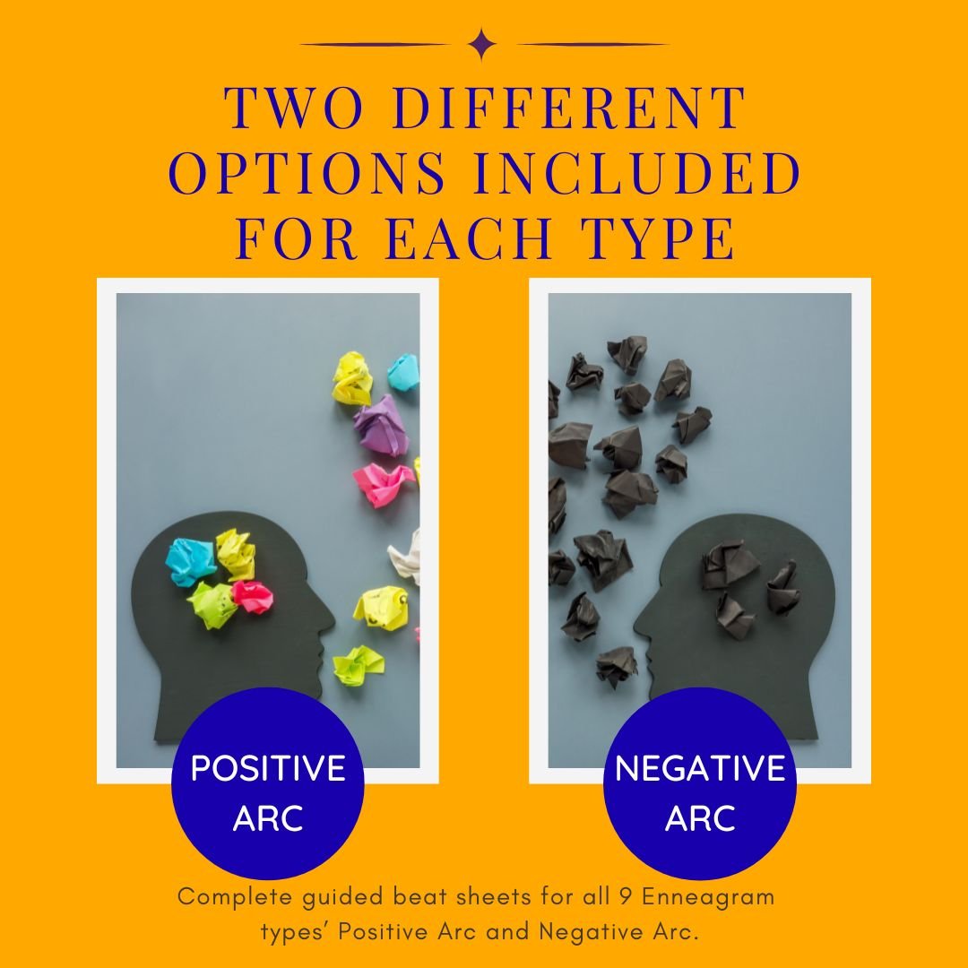 Infuse your storytelling with authentic personality arcs using the Enneagram Character Arc Cheat Sheets bundle – a complete set covering all 9 Enneagram types to help you craft characters’ inner journeys with psychological depth. Each cheat sheet in this collection zeroes in on one Enneagram personality type, summarizing that type’s core traits, fears, and desires, and then outlining how a character of that type can evolve through either a Positive Change Arc or spiral through a Negative Change Arc.