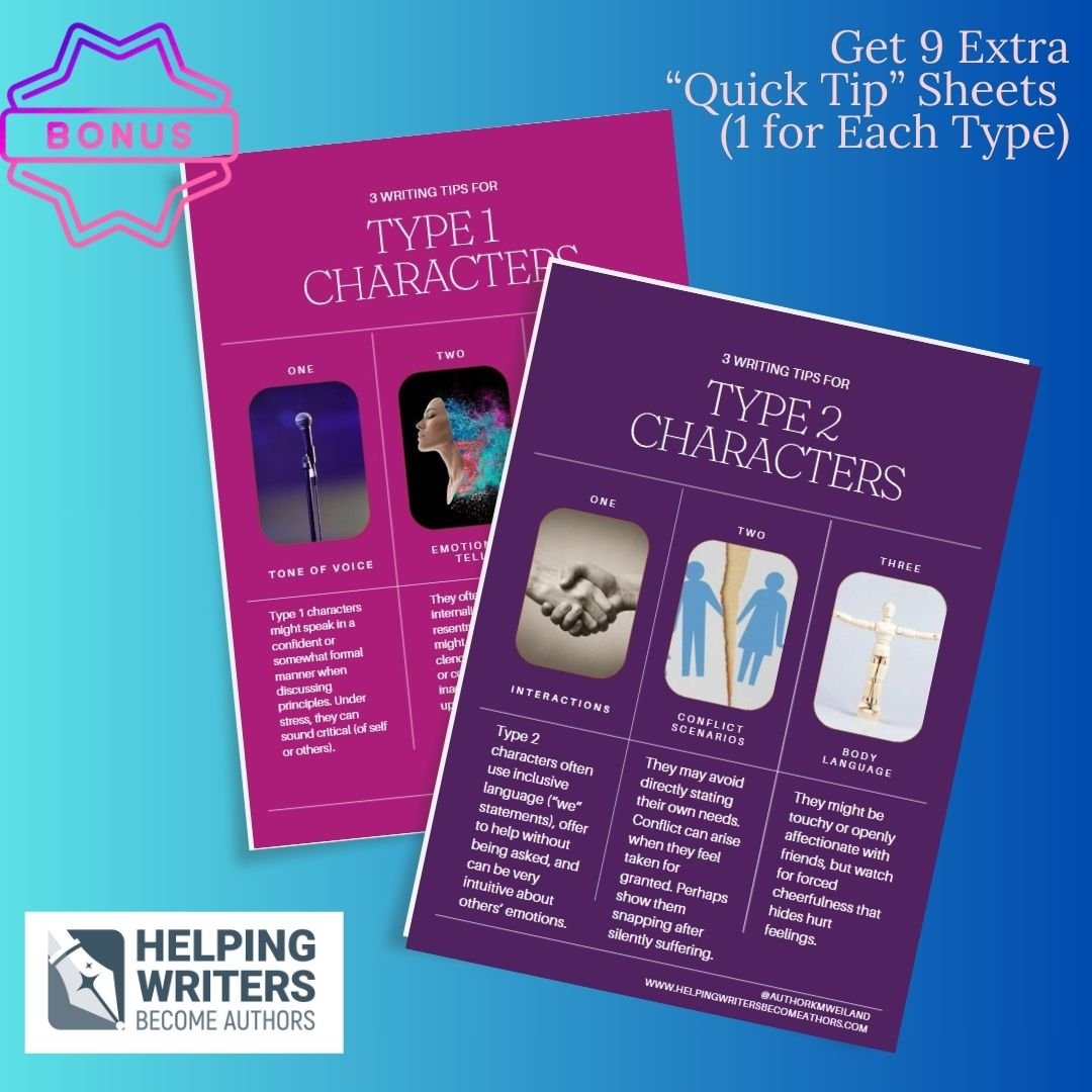 (Also available: individual Enneagram Type Cheat Sheets if you only need a particular type. If you want them all, this bundle offers the best value--more than 50% off!--and ensures you have the whole set at your disposal, making it handy for ensemble casts or multi-book projects!)
